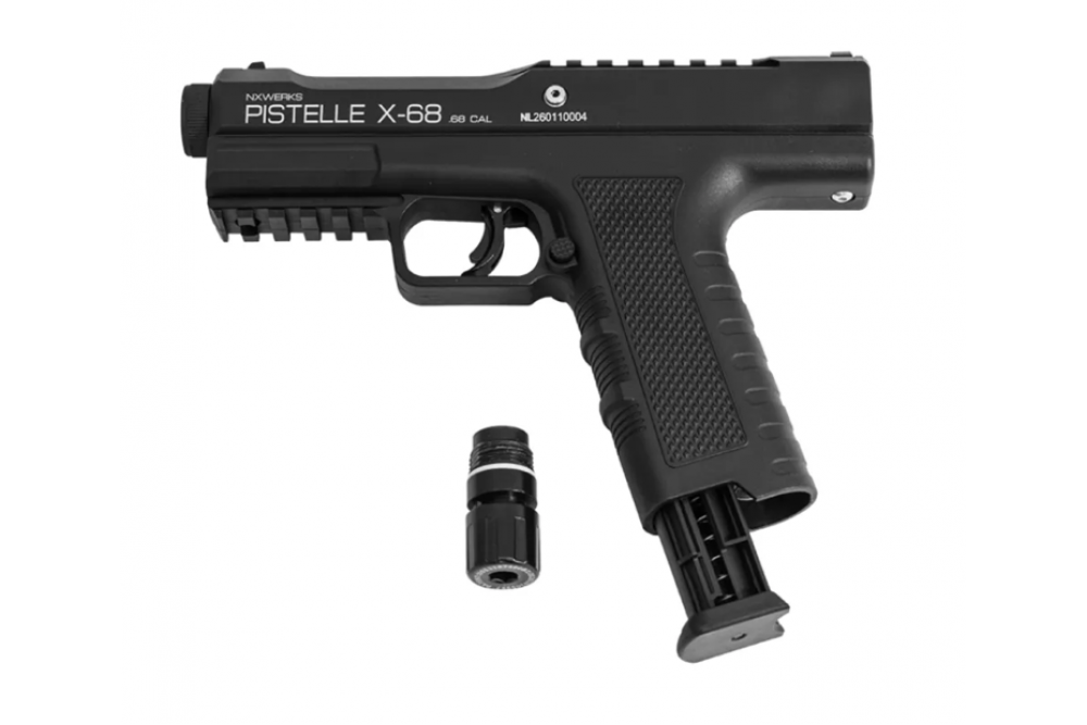De NxWerks Pistelle X-68 is een krachtig less-than-lethal zelfverdedigingspistool in kaliber .68, speciaal ontwikkeld voor situaties die een snelle en effectieve reactie vereisen. Dit CO₂-aangedreven wapen bereikt een energie tot 35 joule en een mondingssnelheid tot 390 fps, waardoor het doelen betrouwbaar en doeltreffend tot op ongeveer 15 meter afstand kan raken.